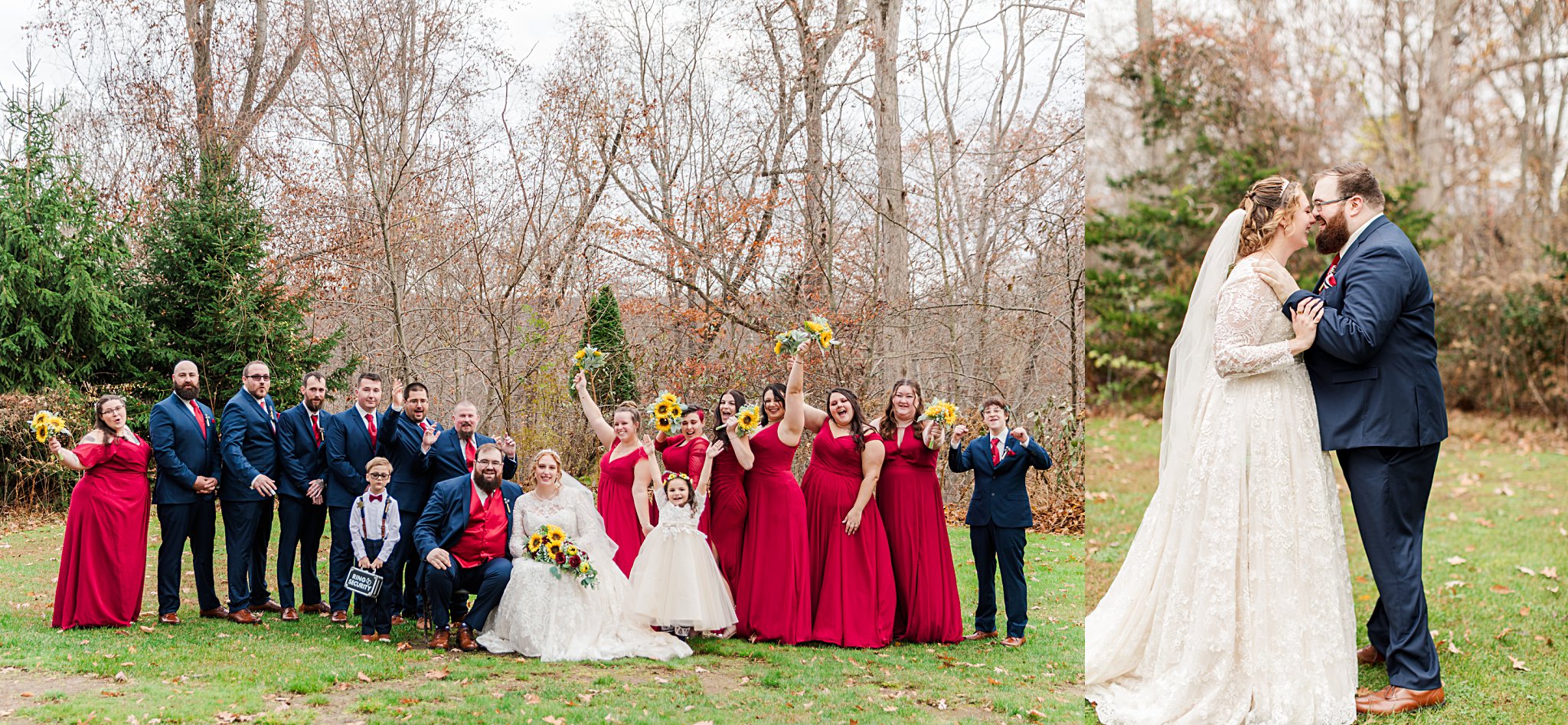 Logan & Joshua ended my year on a nice autumn day at the Pavilion on Crystal Lake. As I mentioned on their own blog post this was a family wedding of sorts and I was thrilled to be there. The sunflowers matched Logan's fun personality and how much these two love to laugh. The wedding party intros were a fun little roasts on each member as they entered the cozy reception hall and the "doggie bags" for people's pups was so thoughtful-since they have 4 dogs of their own-.